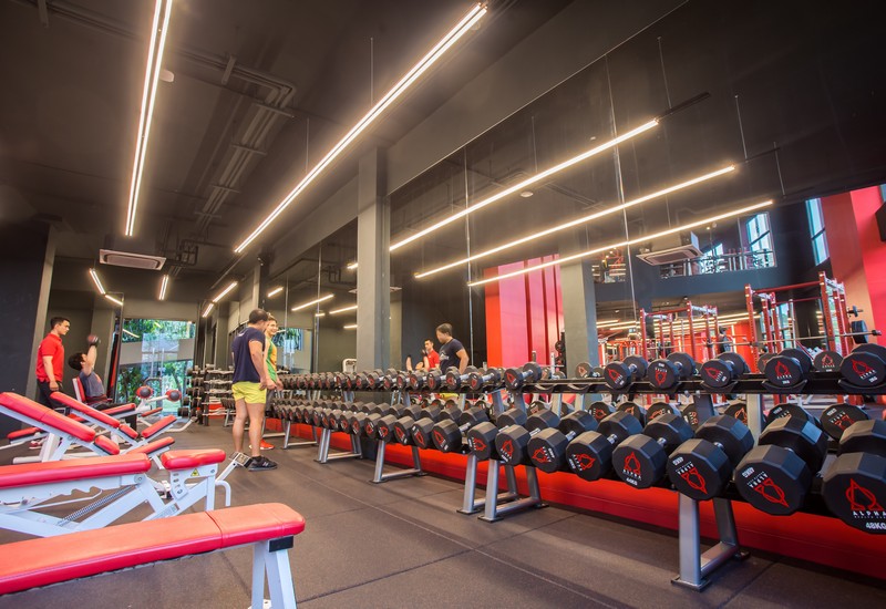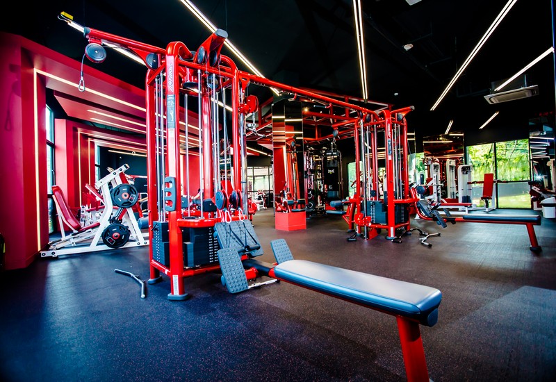 Зона силовых тренировок располагается на площади в 360 кв. м, обеспечивая достаточно пространства для 50 занимающихся одновременно. В зоне установлено 40 различных тренажеров и стоек с оборудованием, включая гантели, штанги и так далее