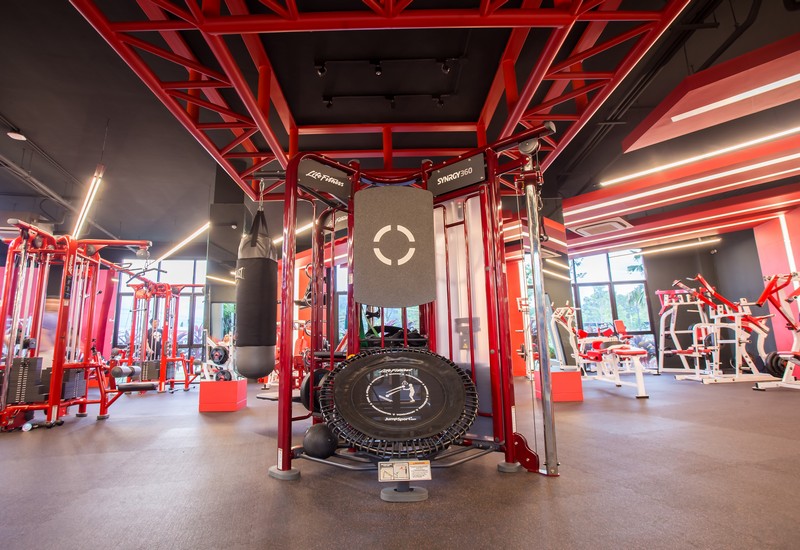 Зона силовых тренировок располагается на площади в 360 кв. м, обеспечивая достаточно пространства для 50 занимающихся одновременно. В зоне установлено 40 различных тренажеров и стоек с оборудованием, включая гантели, штанги и так далее